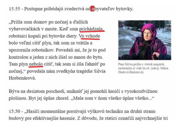 XXX : Ide o to,že hasiči ,,nikdy",ani na druhý deň,na tlačovke nespomenuli tieto vchodové dvere,že ich museli rozbiť,aby sa dostali do bytovky,alebo že niekoho museli zháňať,aby im otvoril vchodové dvere,v skratke,tieto dvere na 99,9% musel niekto otvoriť cca 4-5 minút pred výbuchom,aby vetral aj schodisko,iná cesta,ako sa plyn dostal na schodisko presne iba za tento čas neexistuje,lebo v tento deň,že bola riadna zima,čiže všetky okná boli zavreté,aj na kotolni,aj na chodbách schodiska,cez stupačky sa plyn nedostal pred výbuchom,lebo šachty neboli odvetrávané a za ďalšie,potom by nevybuchlo schodisko,ale byt.A ešte raz,plyn sa valil po schodisku 4-5 minút pred výbuchom,to potvrdil do kamier aj pán Ján z 8 patra a pani mamička,v poslednom dokumente RTVS o výbuchu (videá budú nižšie).Preto som povedal,že namiesto dobrého,sa robil opak,ale ľudia si to neuvedomovali v tej situácii,že keď budú vetrať schodisko,akože dobre robia,namiesto toho pustili plynového tigra do ich bytovky a poriadne hladného.Alebo,ako im ľudia na sieťach vypisujú,že mali volať plynárov,hasičov,atď.,ale nemohli,keď v bytovke 4.5 minút nebol žiadny plyn,ani na schodisku,lebo ľudia normálne používali výťah.Nasleduje odkaz na tlačovku hasičov,ktorá bola po zásahu v Prešove.Tu treba pripomenúť,že hasiči fakt riskovali svoje životy,uvidíte aj nižšie vo videách,kde to komentovali ľudia, ktorí natáčali na telefóny,v skratke,klobúk dole pred nimi.Tu nájdeš tlačovku,kde celý zásah podrobne vysvetlili a nižšie videofotka,ako to vyzeralo tesne po príchode hasičov.