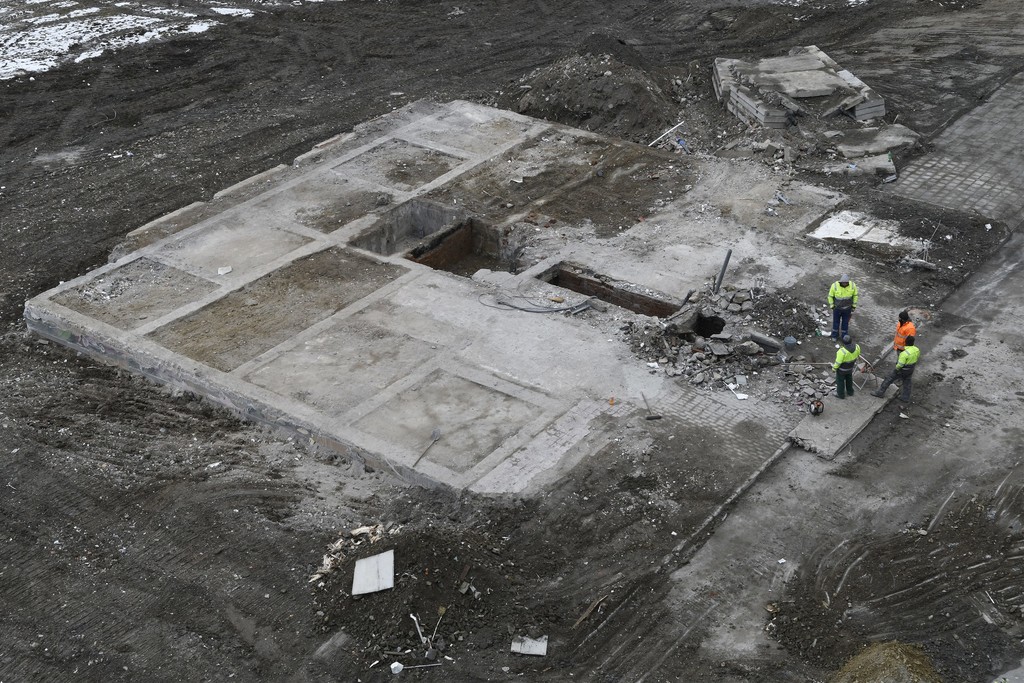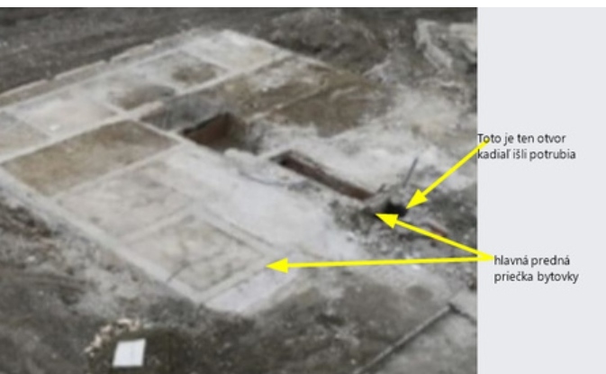 Na fotke sú ešte staré,biele plastové vchodové dvere,na kľúč.Ale tie šachty,sú fakt blízko baraku a tá vidomerná,ktorú správca spomína,je šachta bližšie k vchodovým dverám,čiže tá na ľavo,ktorá horela..Teraz si pozrite fotku,keď bola suť odvezená,ako hlboko boli uložené tie rúry a kadiaľ ten kanál prechádzal do tej zadnej miestnosti,kde boli uložené tie rúry,čiže aj bývalý teplovod,ktorý pred barakom odrezali.Všimnite si na fotke aj väčšiu jamu,v strede bytovky,to je pravdepodobne výťahová šachta,čiže aj keď som nebol nikdy v tej bytovke,viem,že schodisko začína hneď pri vchodových dverách,toto je mimoriadne dôležitá vec,pre celé odhalenie záhady a výťah sa nachádzal asi až v strede bytovky.Tu je fotka 1: